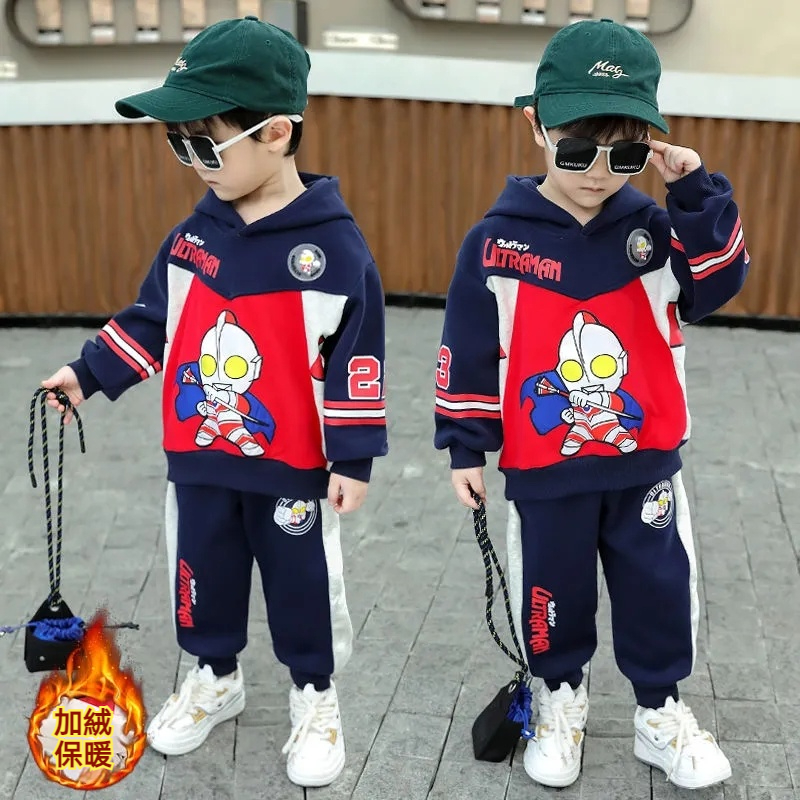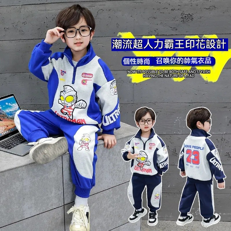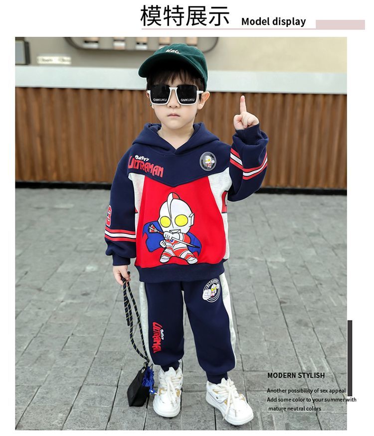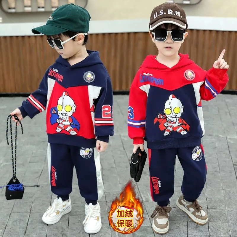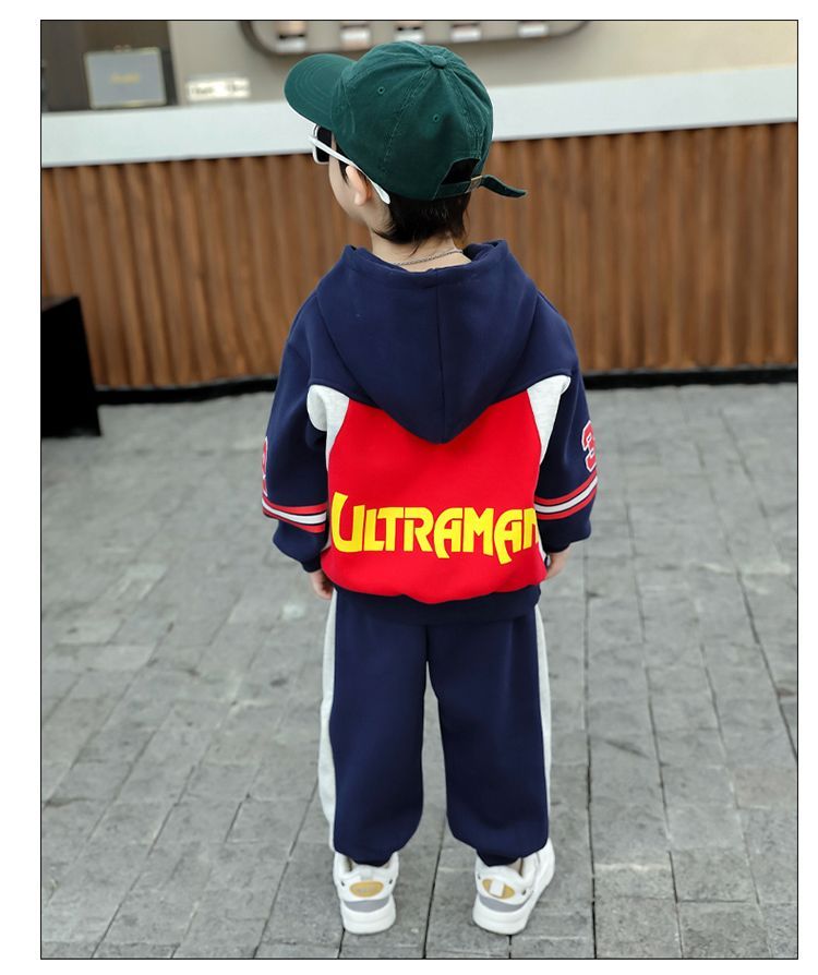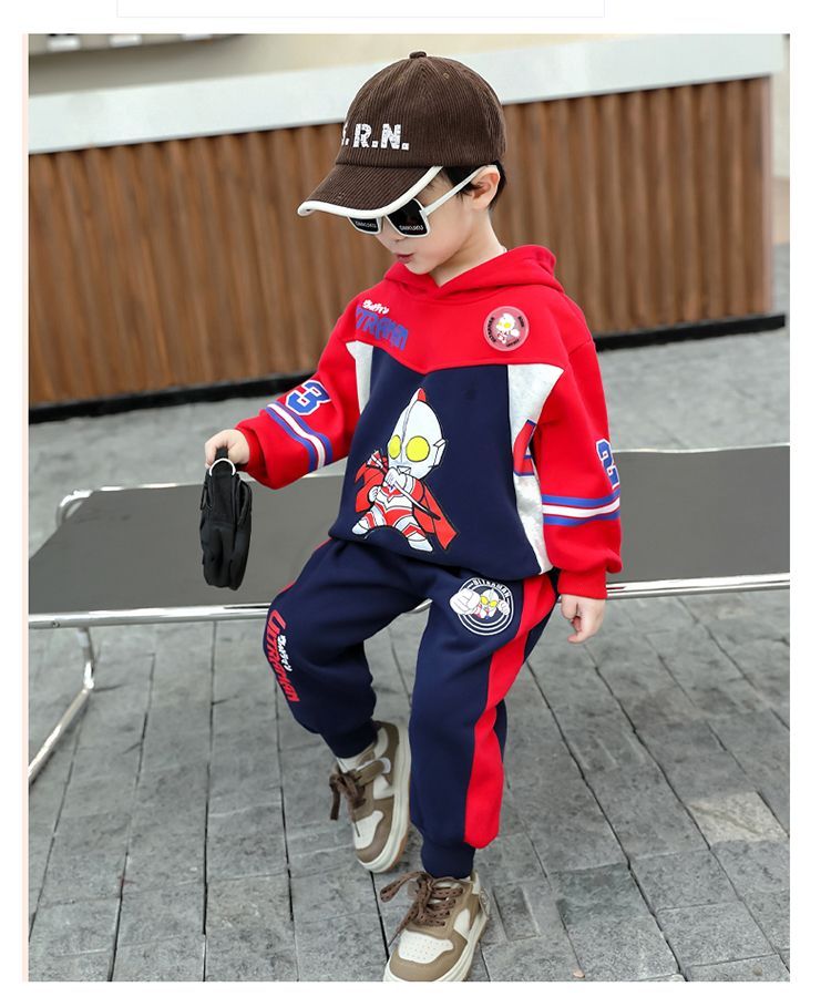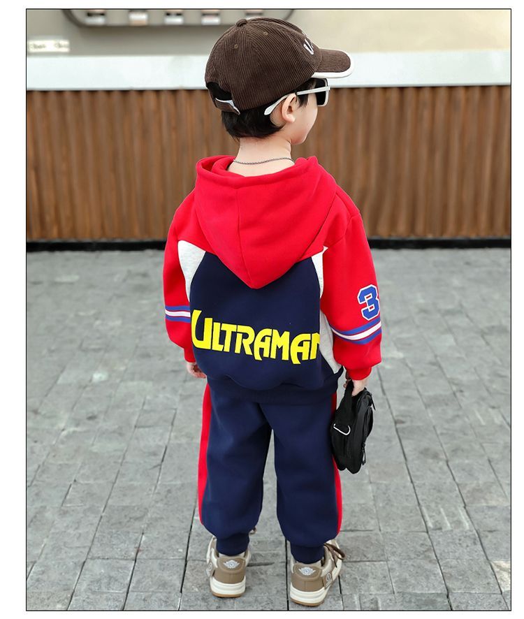 第 2 件 : 男童洋氣酷帥機車服超人秋冬加絨衛衣兩件組 多色搭配可選