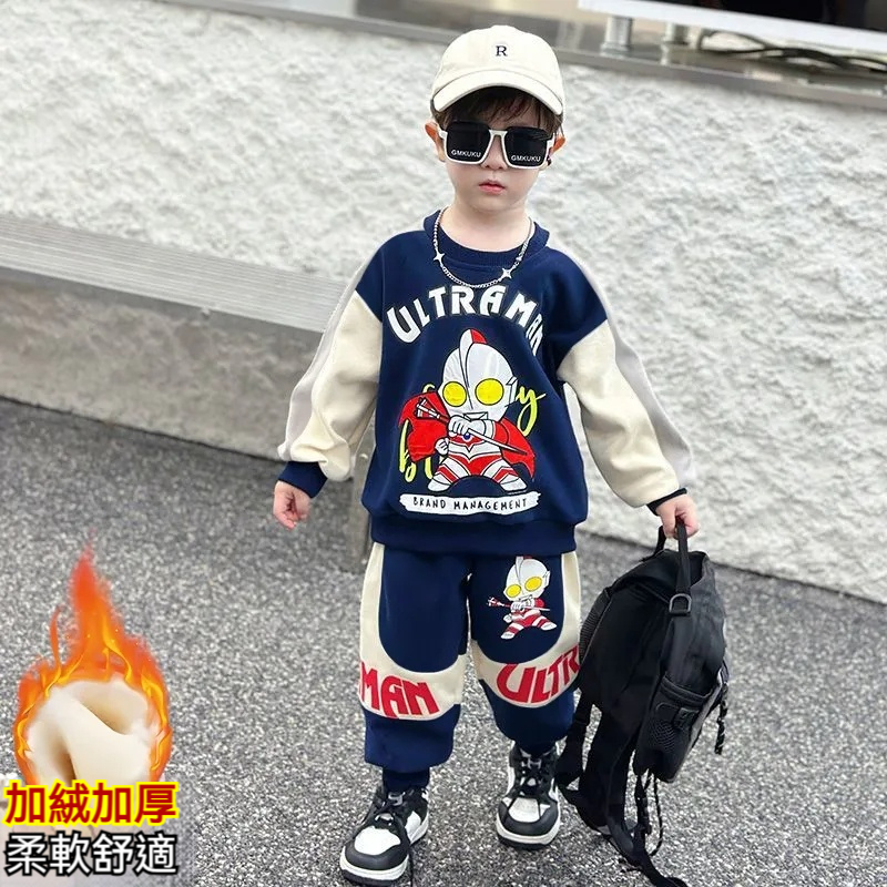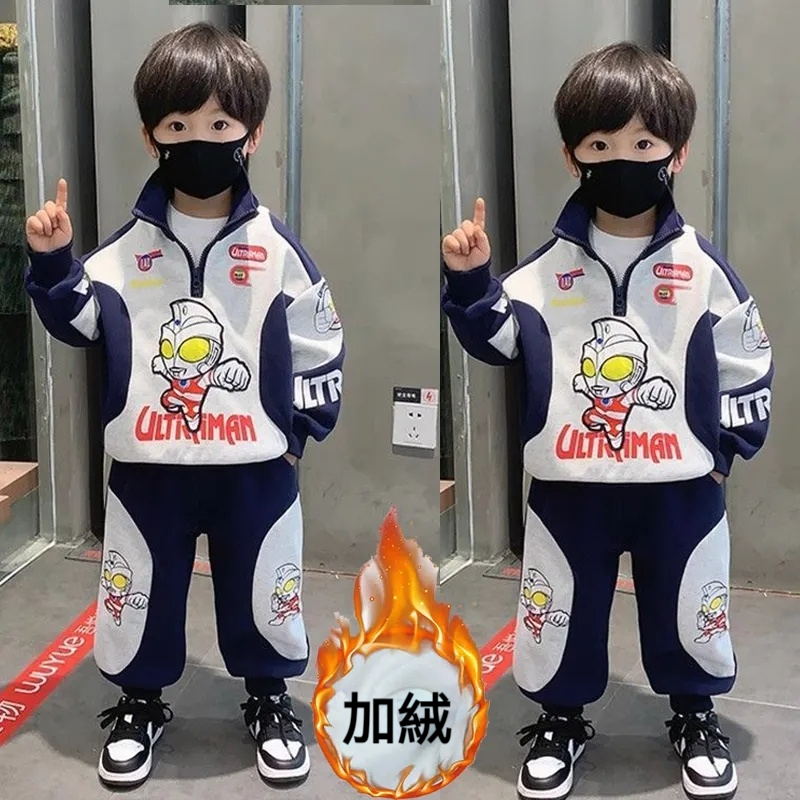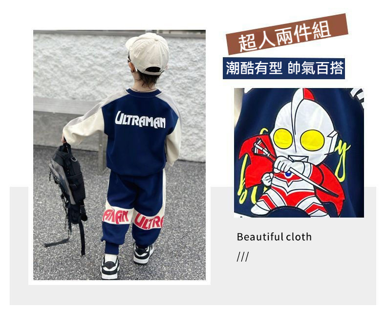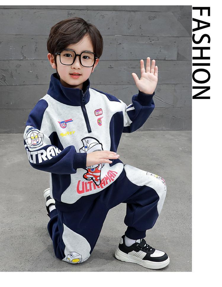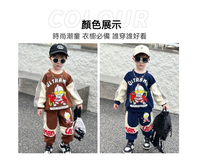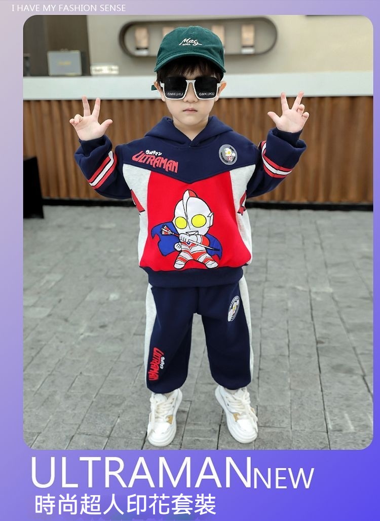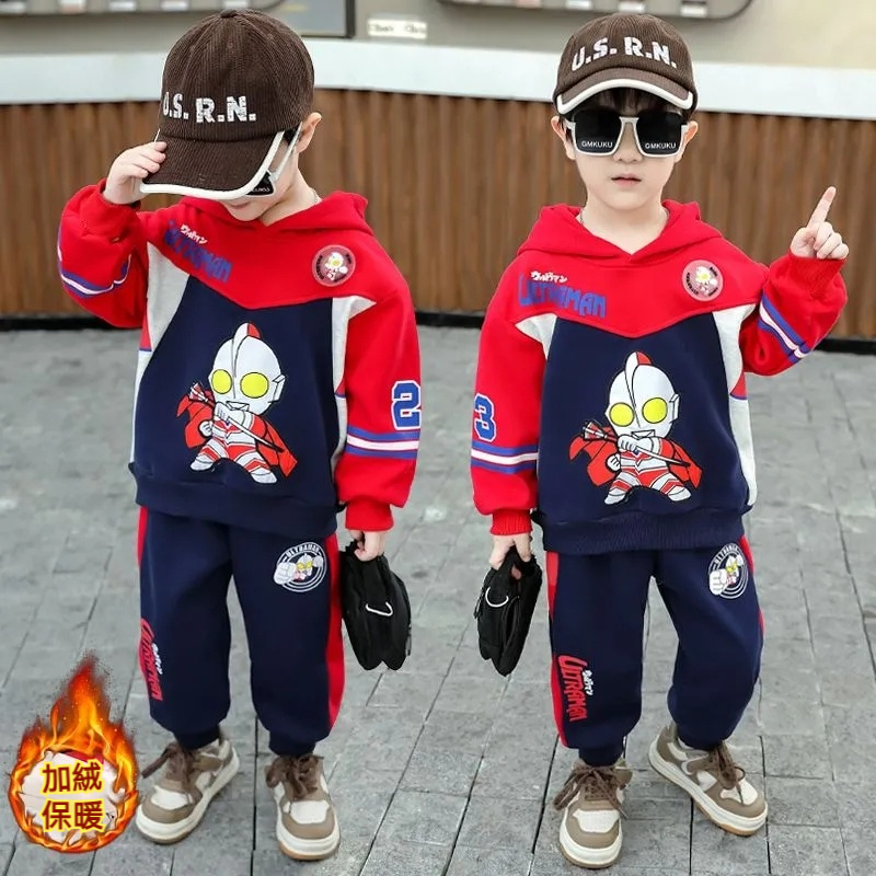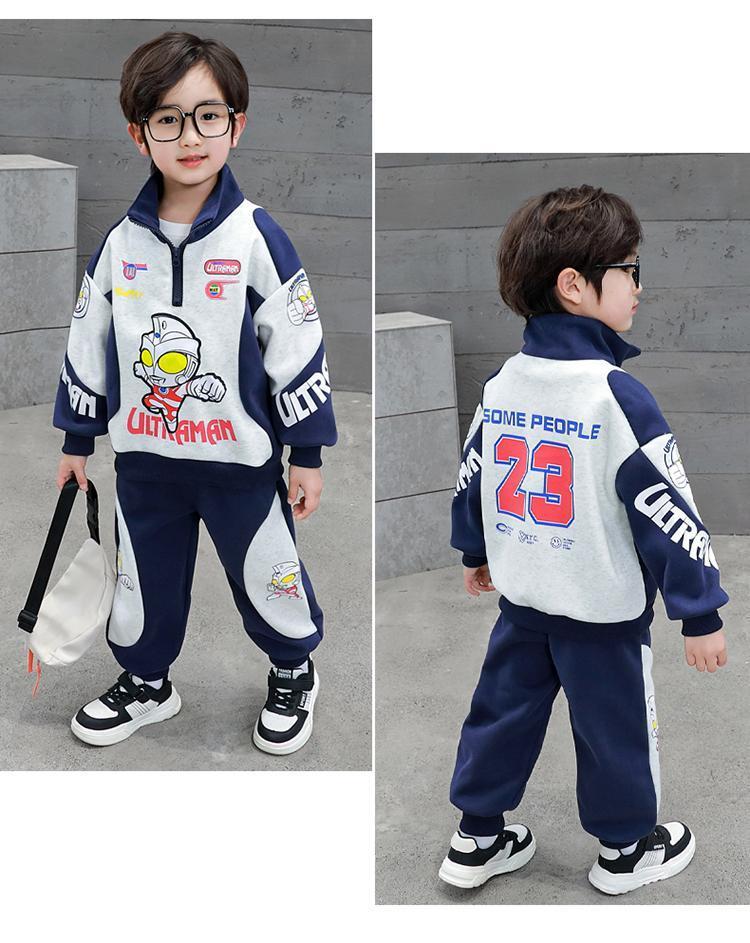 第 2 件 : 男童洋氣酷帥機車服超人秋冬加絨衛衣兩件組 多色搭配可選
