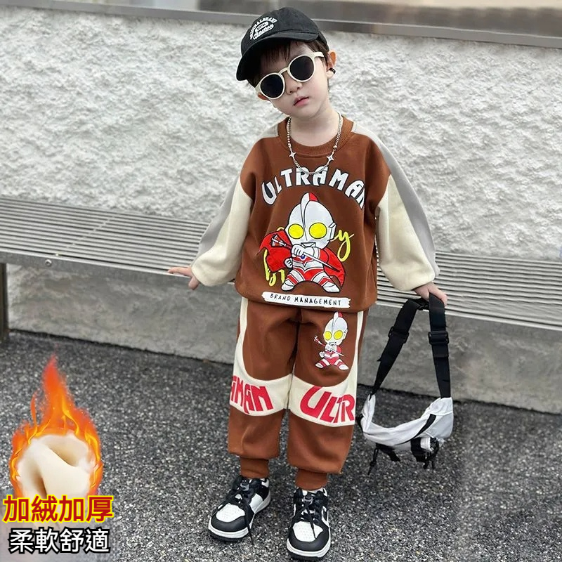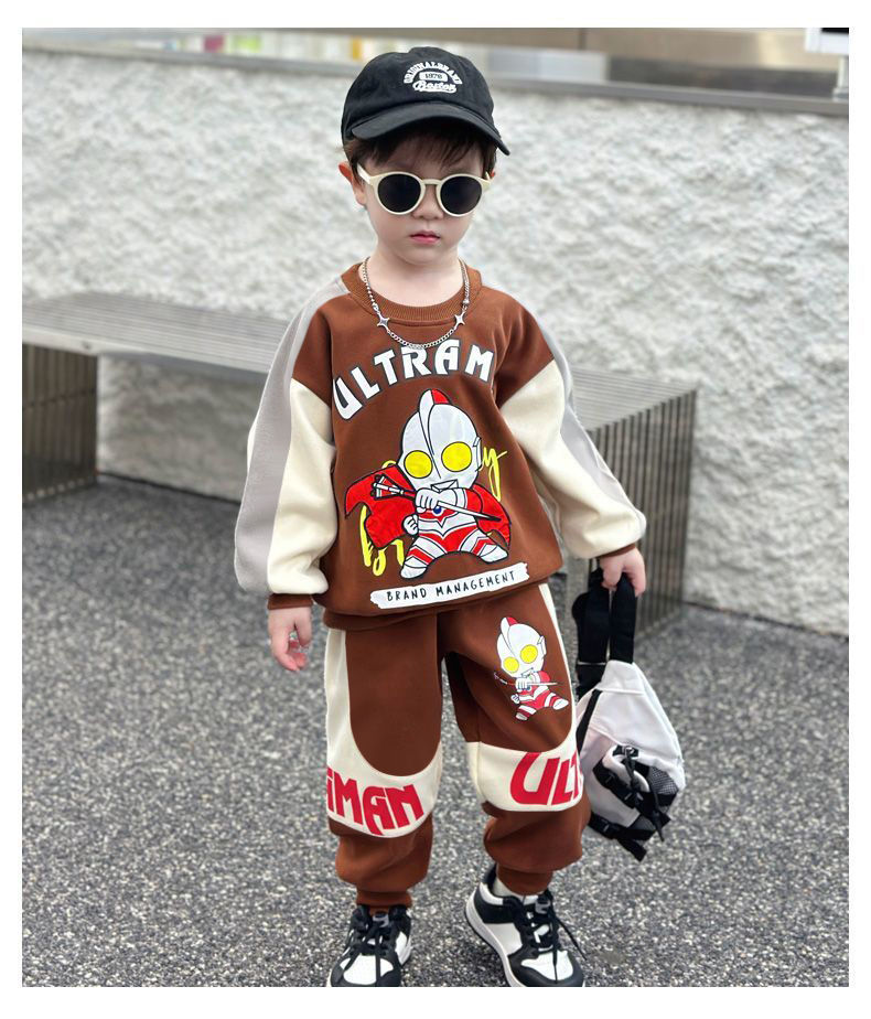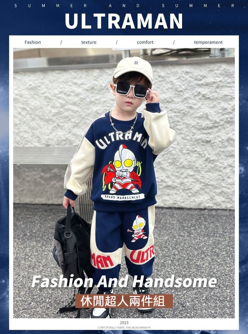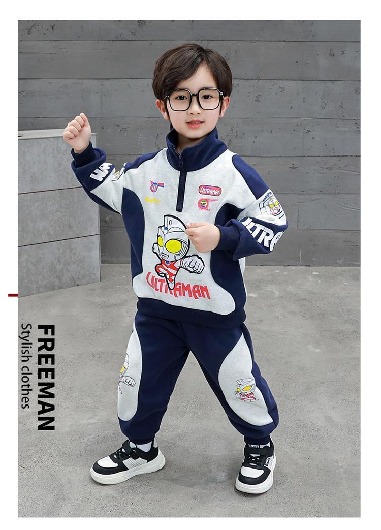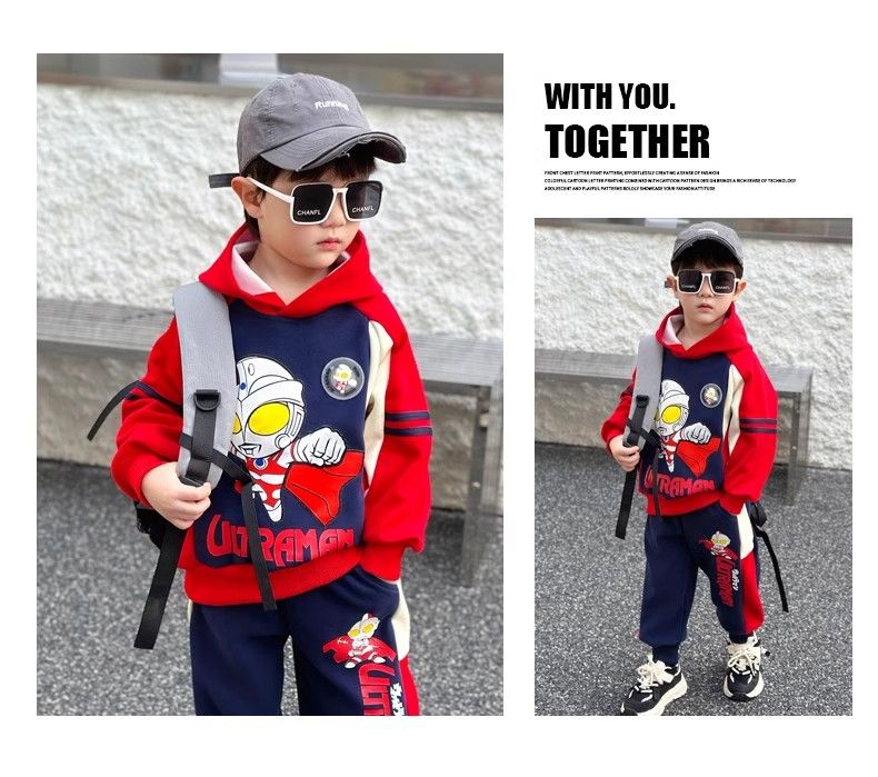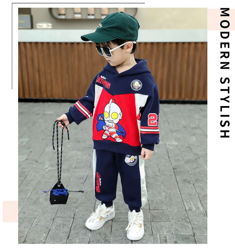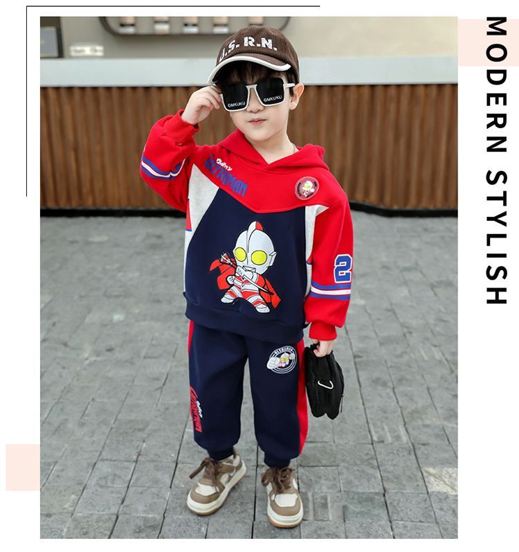 第 2 件 : 男童洋氣酷帥機車服超人秋冬加絨衛衣兩件組 多色搭配可選