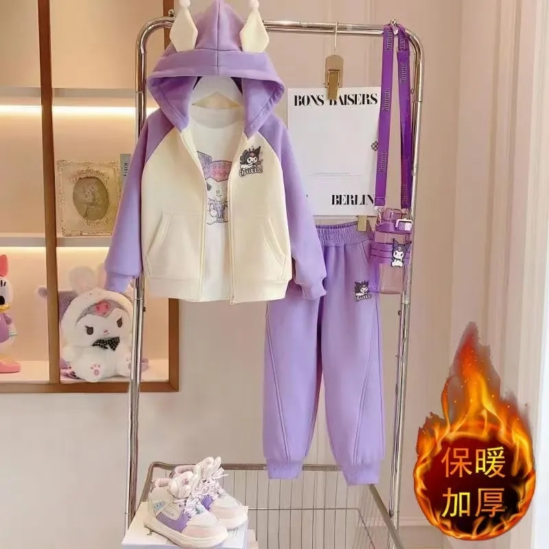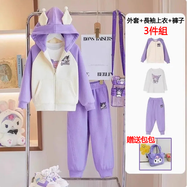 2024新款兒童酷洛米連帽外套+長袖上衣+褲子三件組,秋冬加絨加厚三件組/春秋不加絨三件組 NT$ 1490