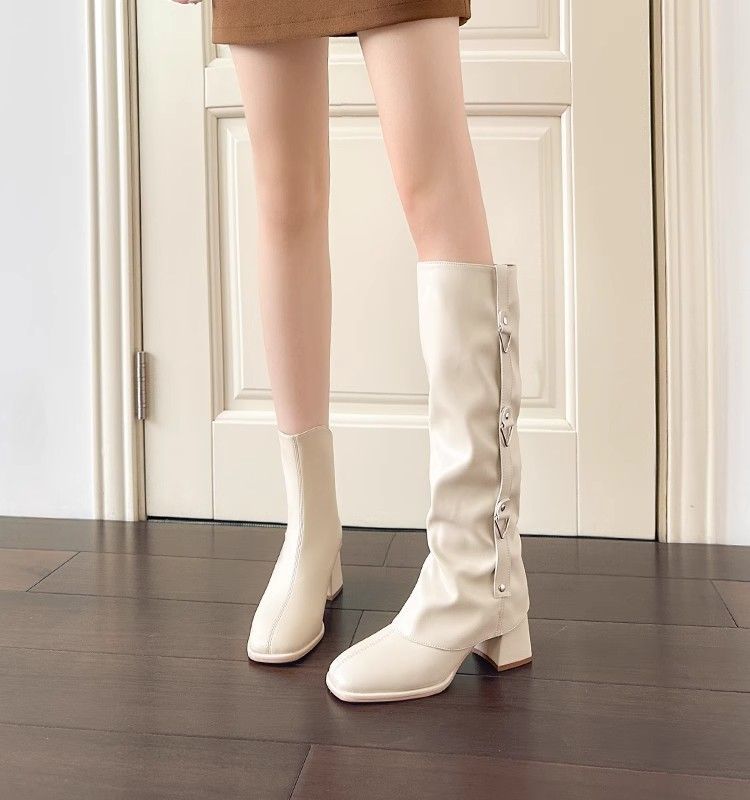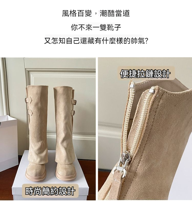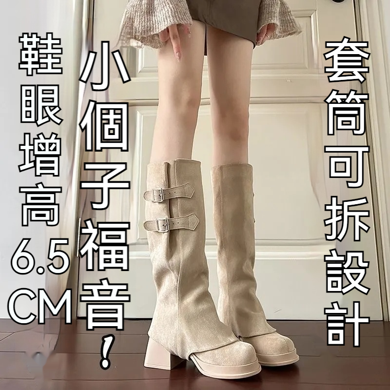 第 1 件 : 2025年新款兩穿可拆式長靴&短靴【贈送新年耳釘2對】絨面米白色/絨面咖啡色/皮質光面米白色/皮質光面黑色