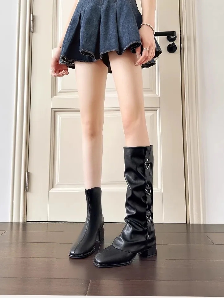2025年新款兩穿可拆式長靴&短靴【贈送新年耳釘2對】絨面米白色/絨面咖啡色/皮質光面米白色/皮質光面黑色