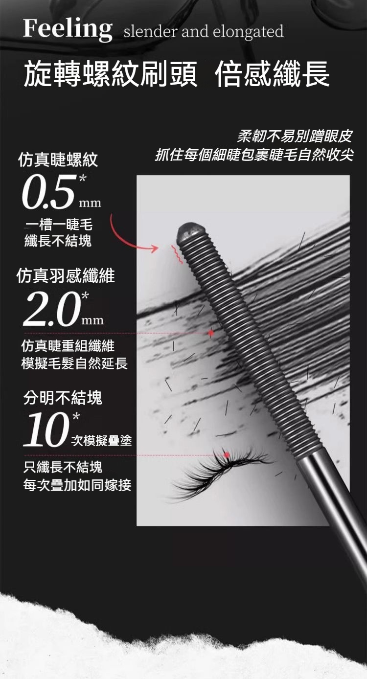 第 6 件 : 【明星同款】【防水防汗持久定型】纖長捲翹鋼管睫毛膏,輕輕鬆鬆擁有太陽花睫毛!根根分明,放大雙眼,刷頭獨特設計,取量均匀,不結塊,一整天不暈妝。