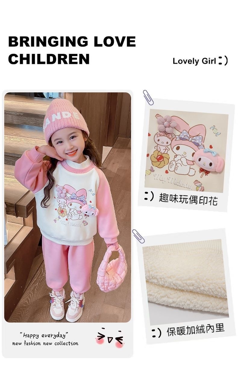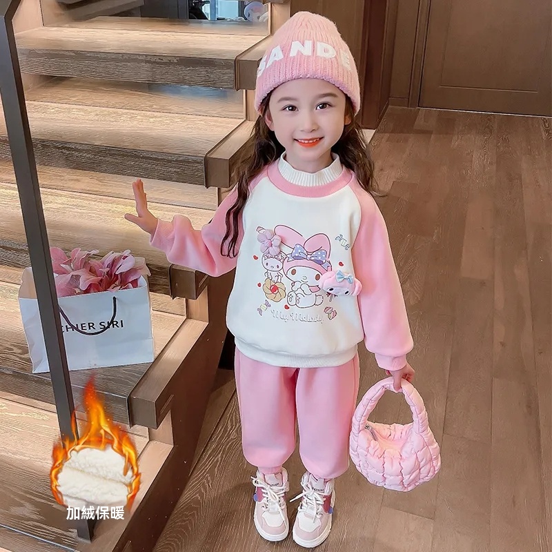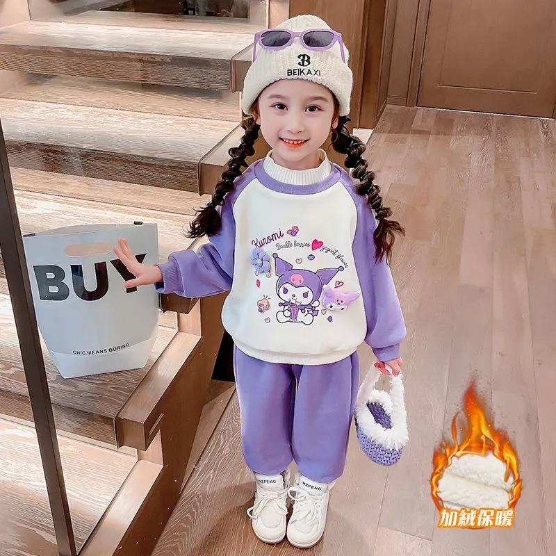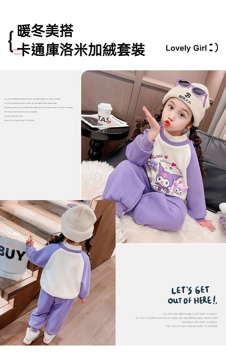 女童加絨套裝秋冬2025款洋氣兒童庫洛米女孩加厚連帽外套2件套 NT$ 1799