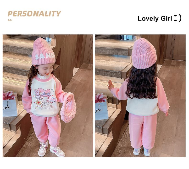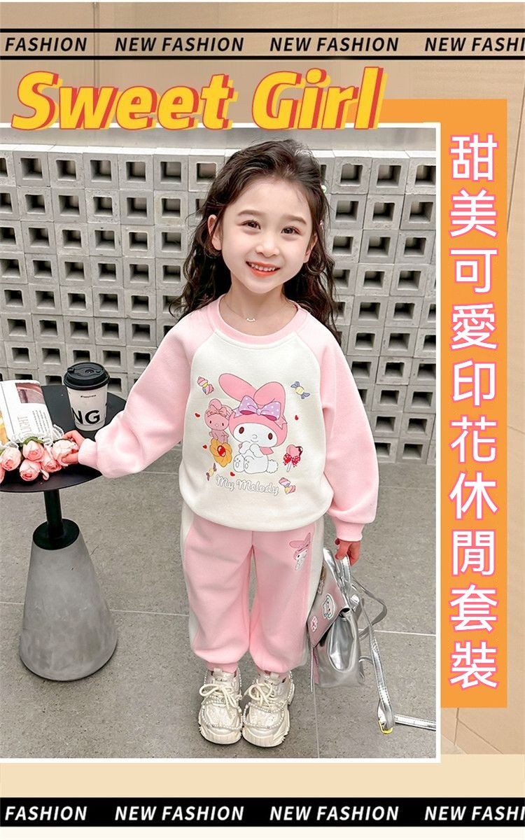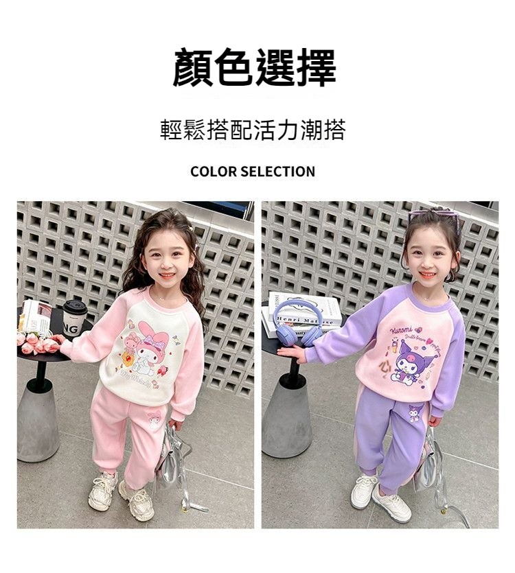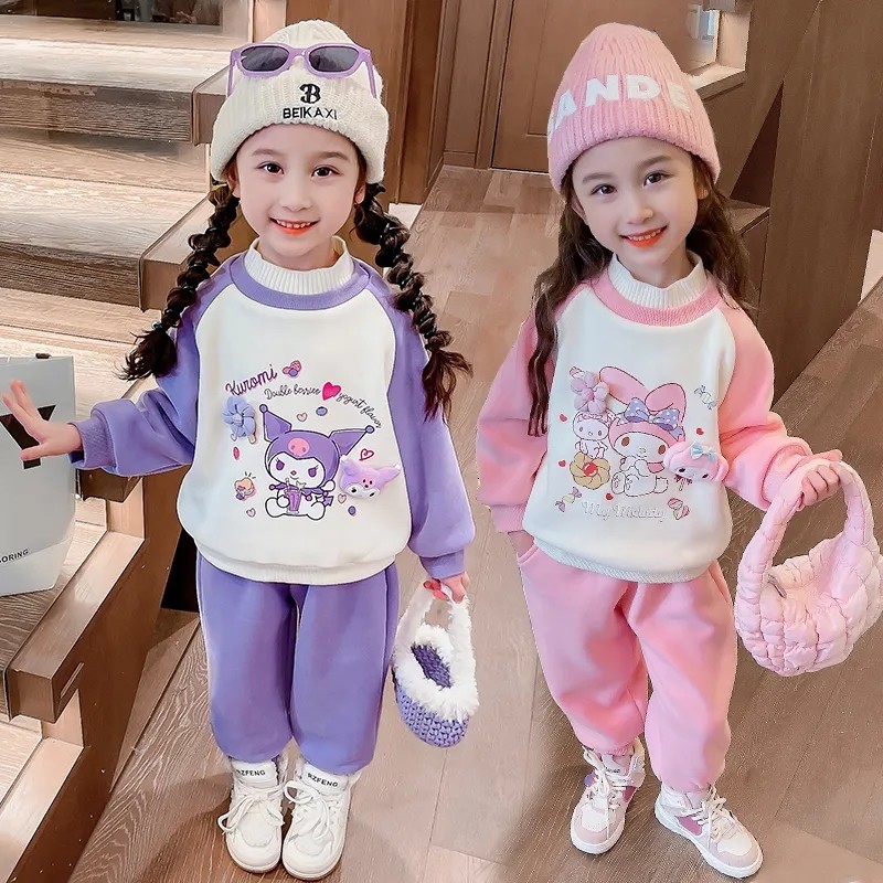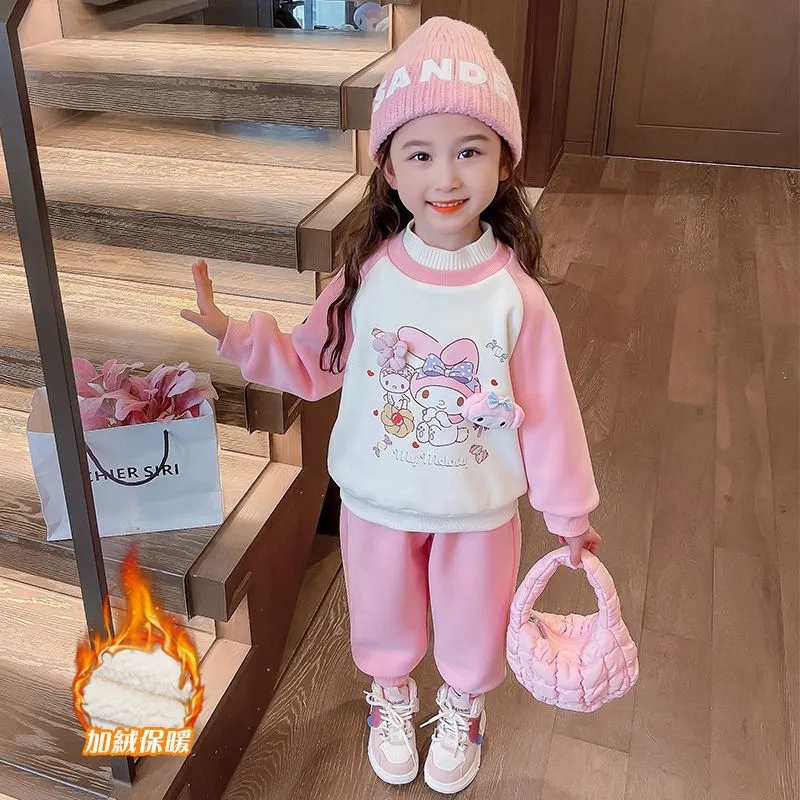 女童加絨套裝秋冬2025款洋氣兒童庫洛米女孩加厚連帽外套2件套 NT$ 1799