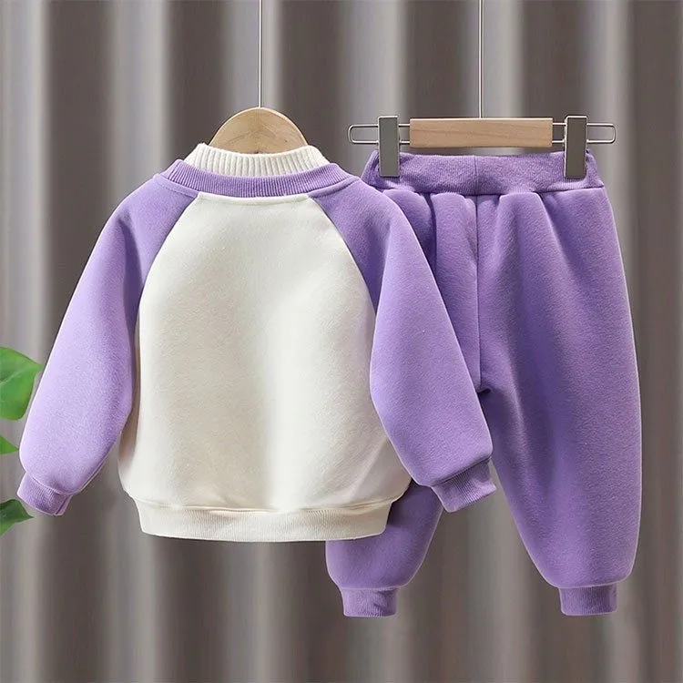 女童加絨套裝秋冬2025款洋氣兒童庫洛米女孩加厚連帽外套2件套