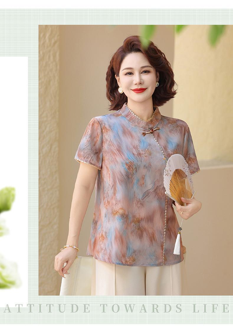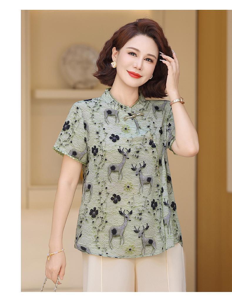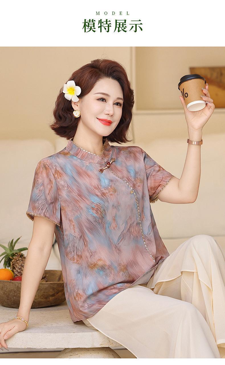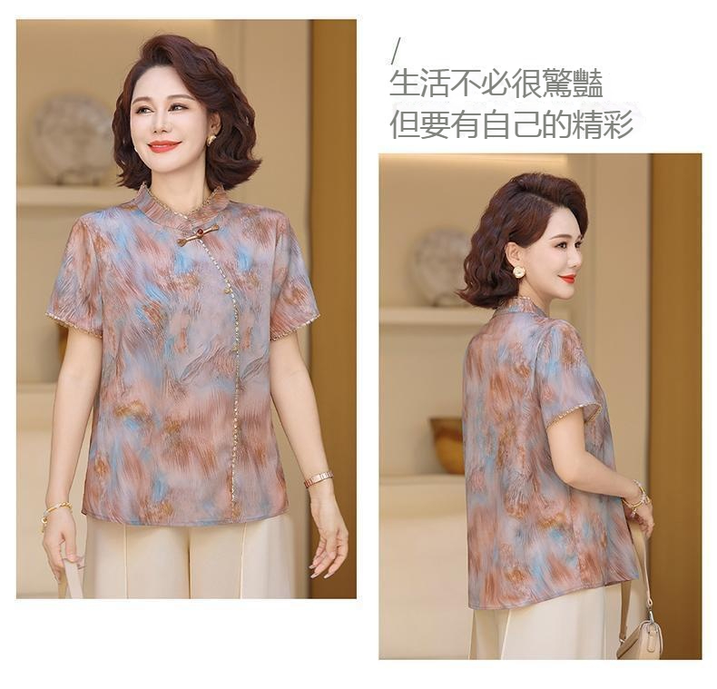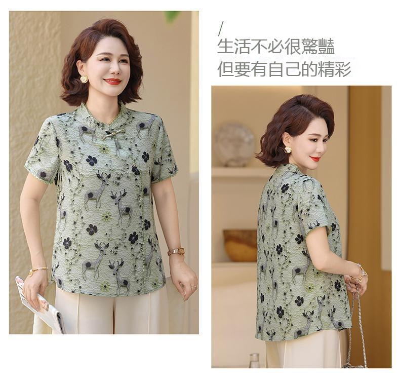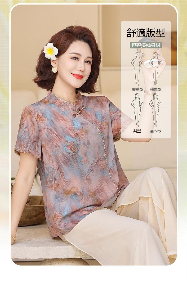 2025優雅氣質媽媽夏季高檔雙絲皺短袖小衫上衣+褲子兩件組,大尺碼寬鬆,顯瘦減齡 NT$ 1199