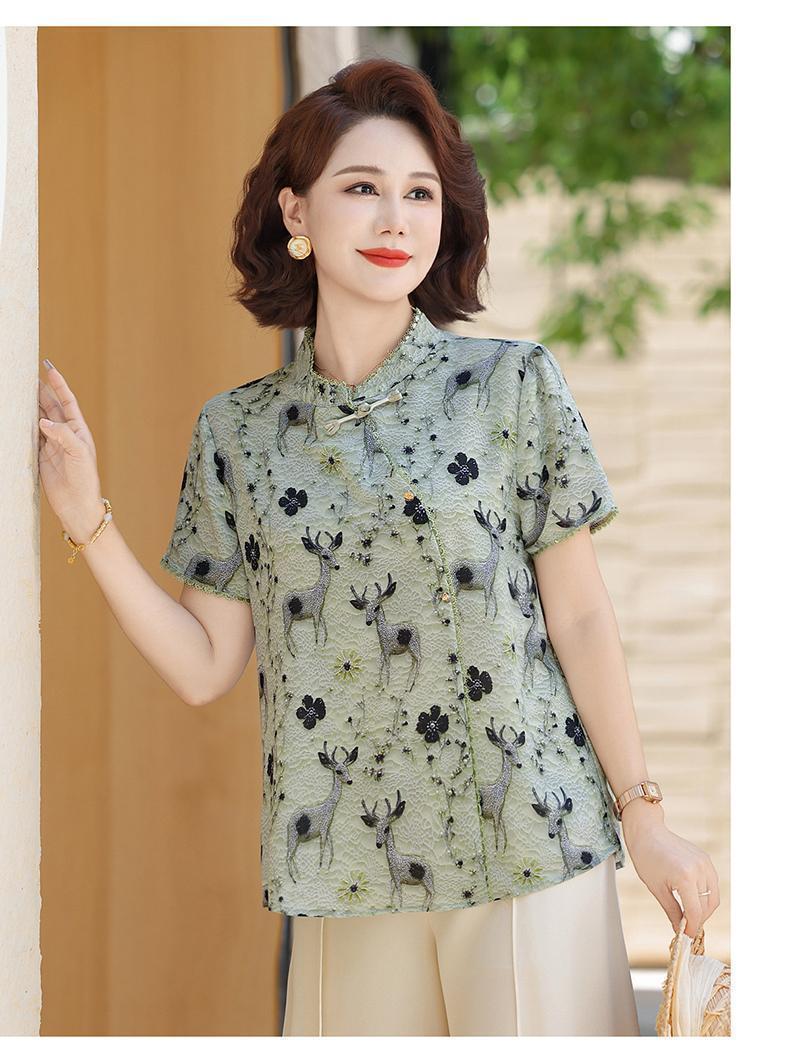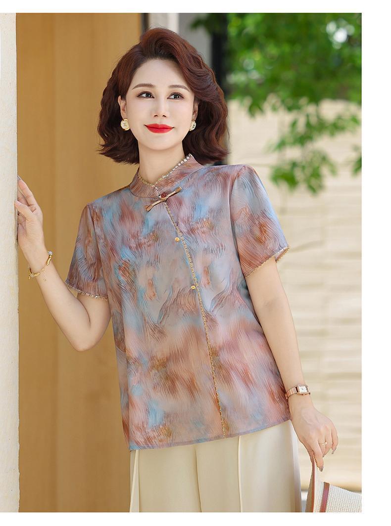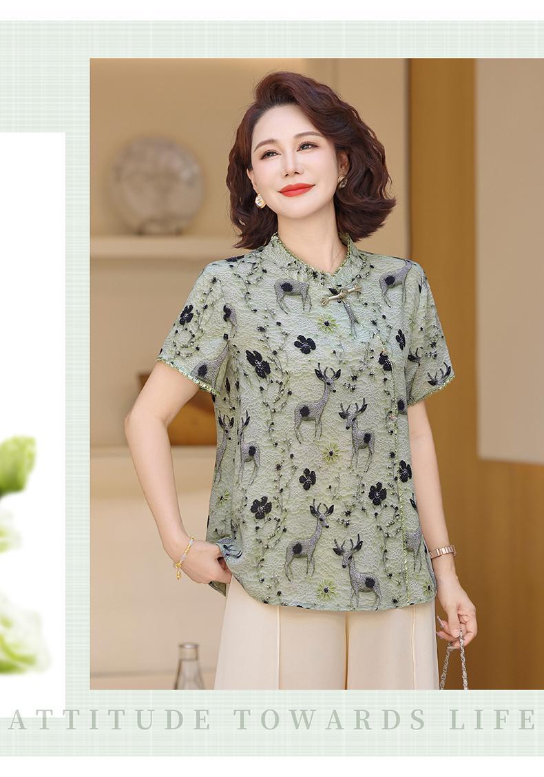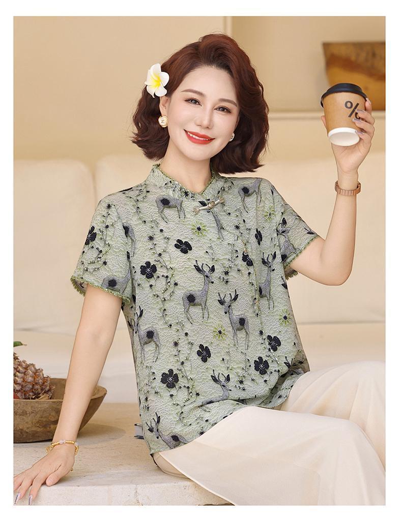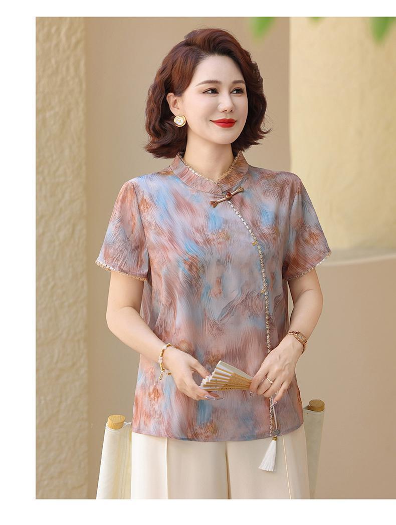 2025優雅氣質媽媽夏季高檔雙絲皺短袖小衫上衣+褲子兩件組,大尺碼寬鬆,顯瘦減齡 NT$ 1199