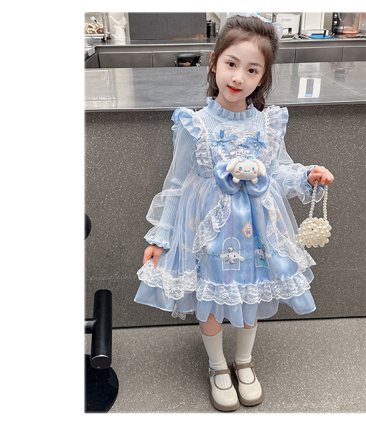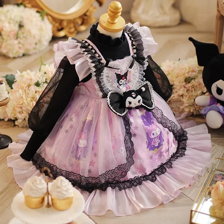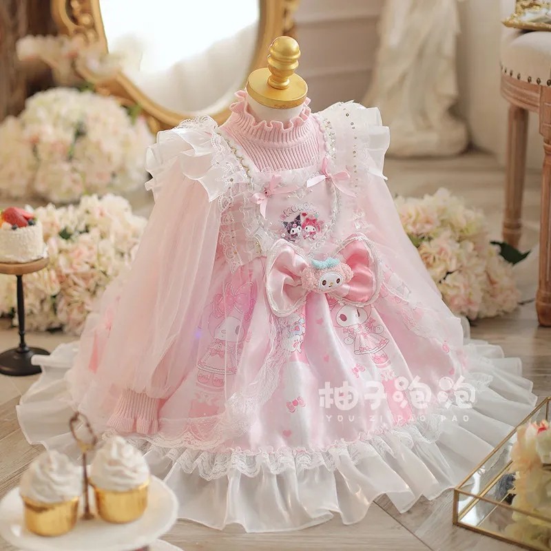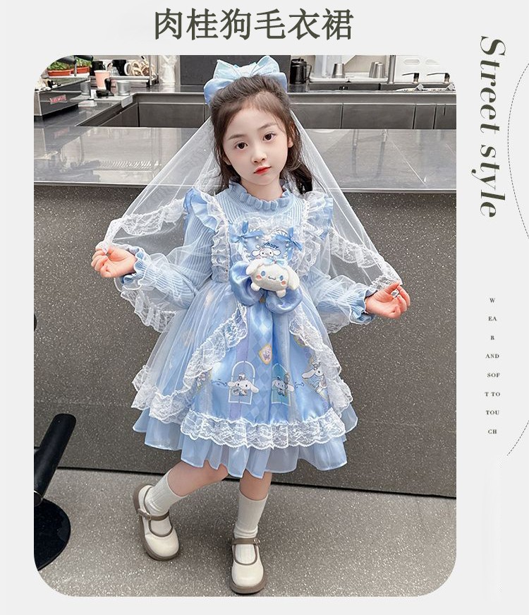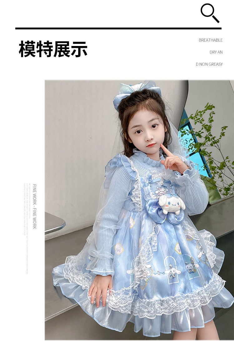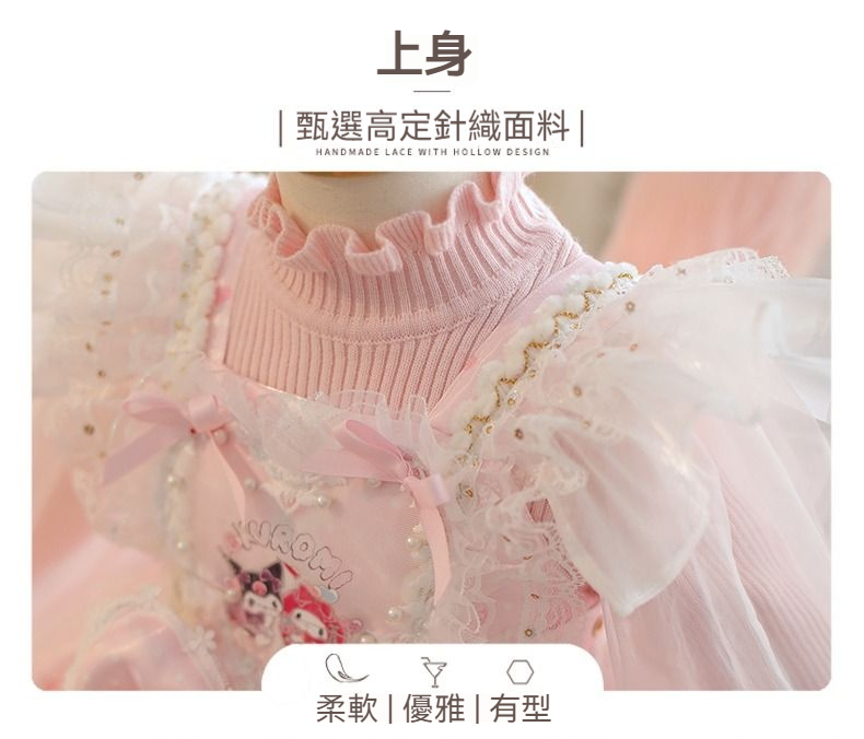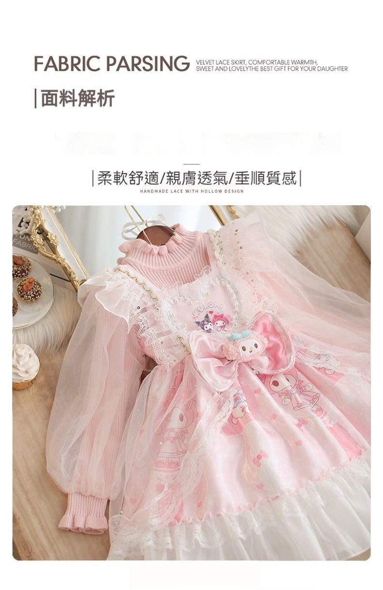兒童秋冬Lolita生日可愛洋氣禮服 粉紅美樂蒂針織公主裙 紫色Kuromi針織公主裙 藍色肉桂狗針織公主裙 NT$ 1399