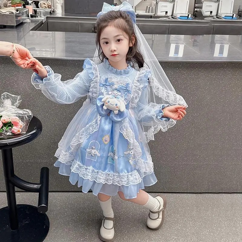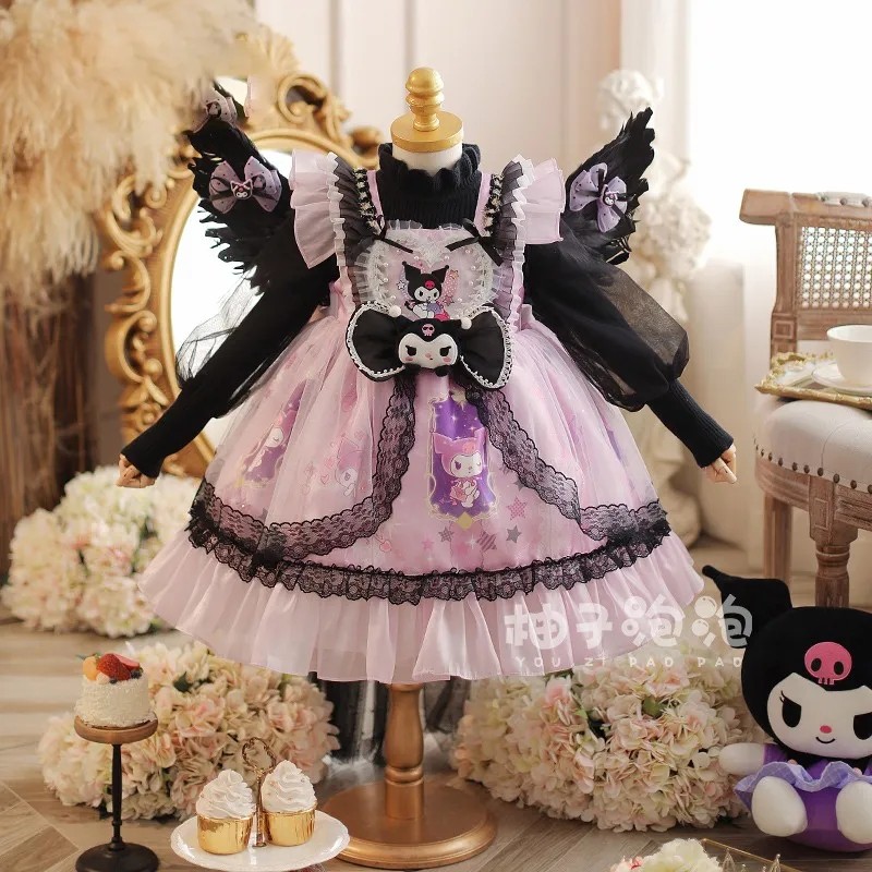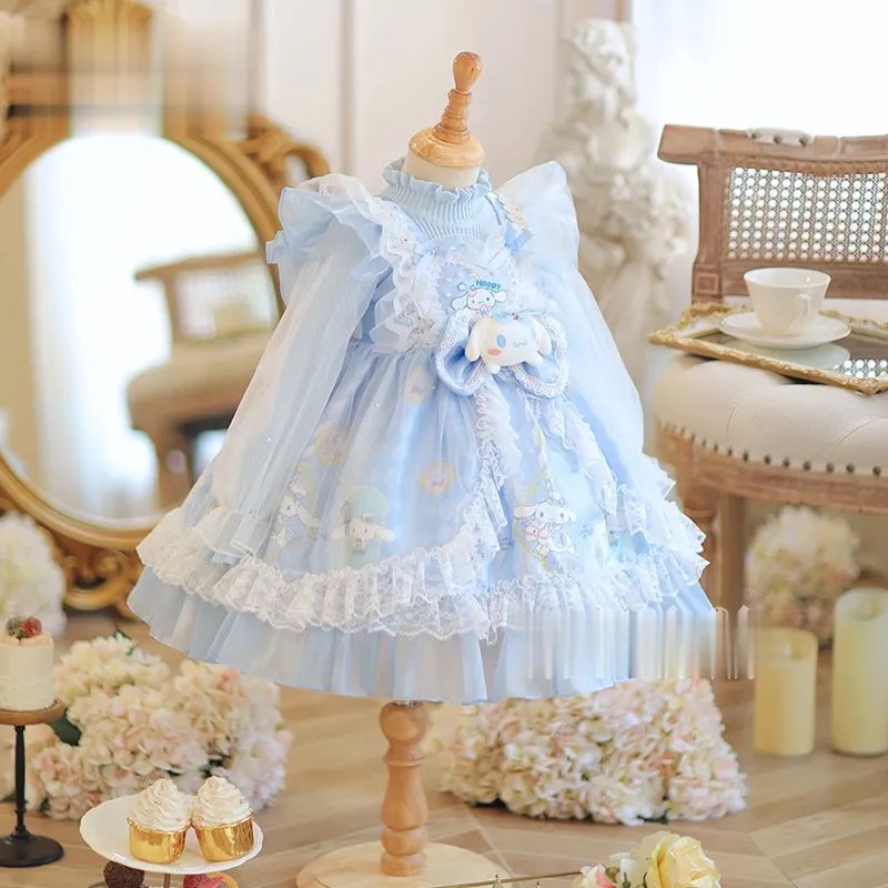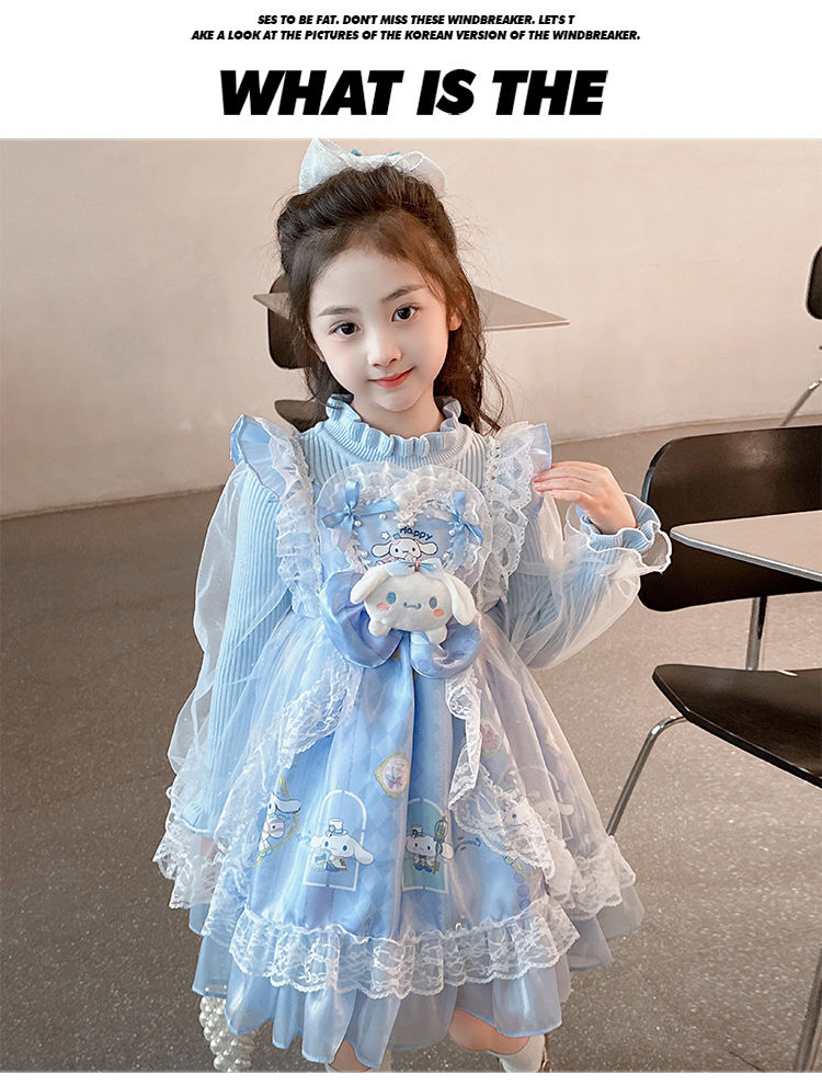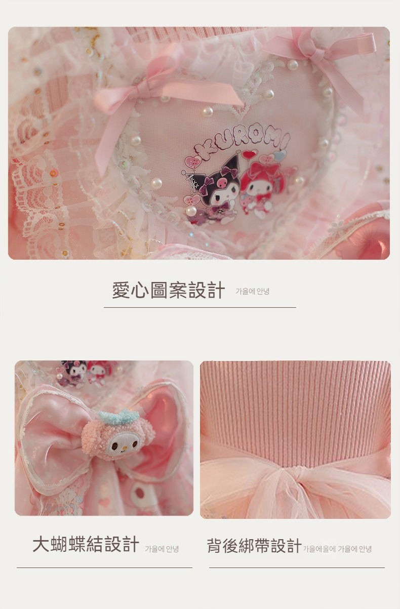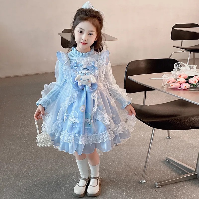 兒童秋冬Lolita生日可愛洋氣禮服 粉紅美樂蒂針織公主裙 紫色Kuromi針織公主裙 藍色肉桂狗針織公主裙 NT$ 1399