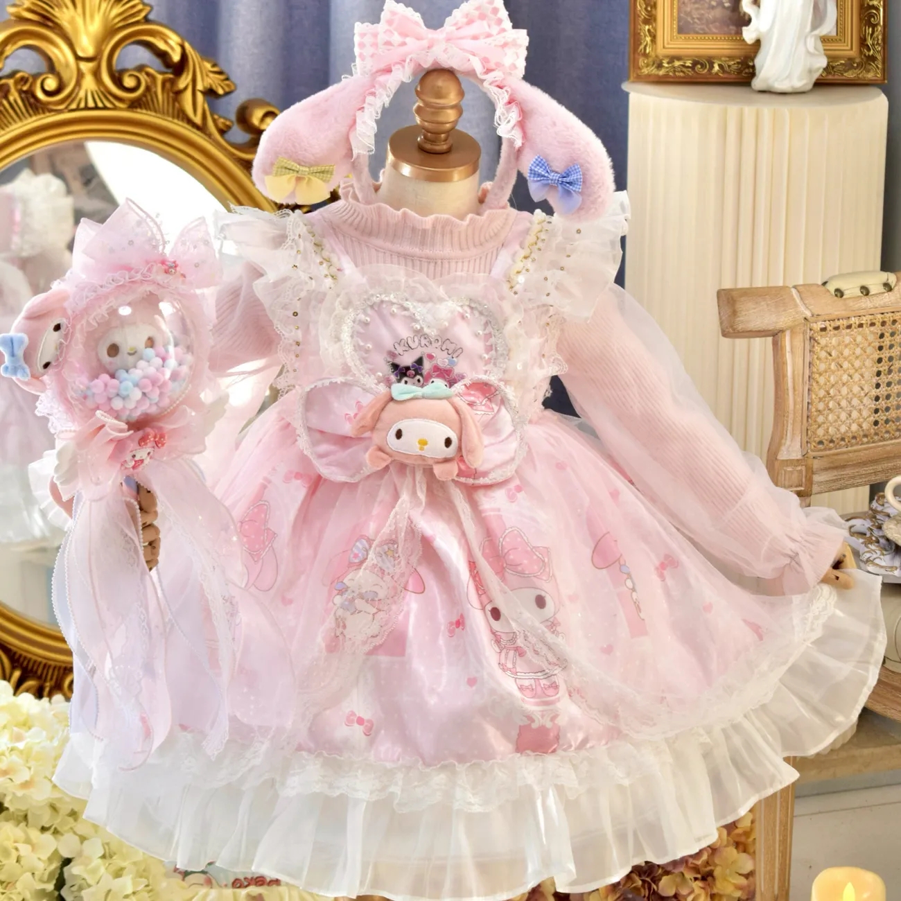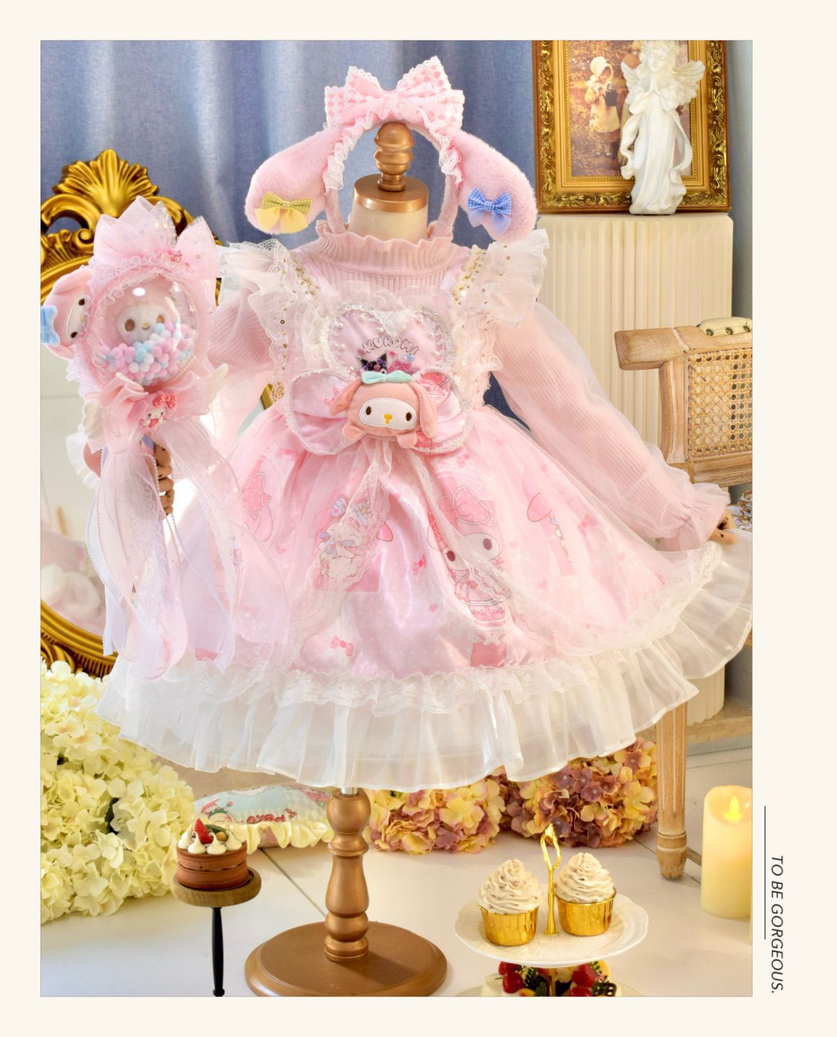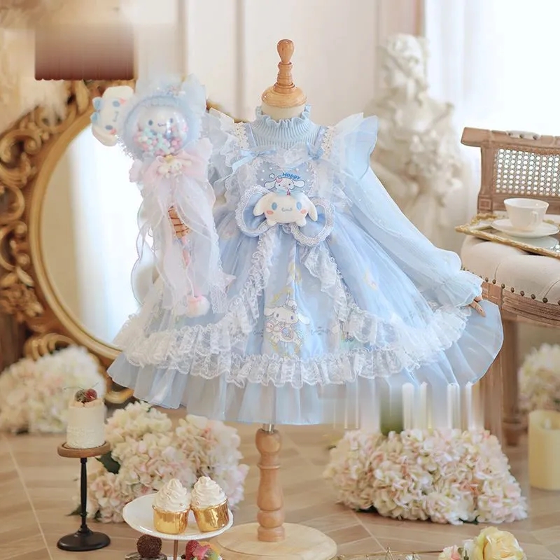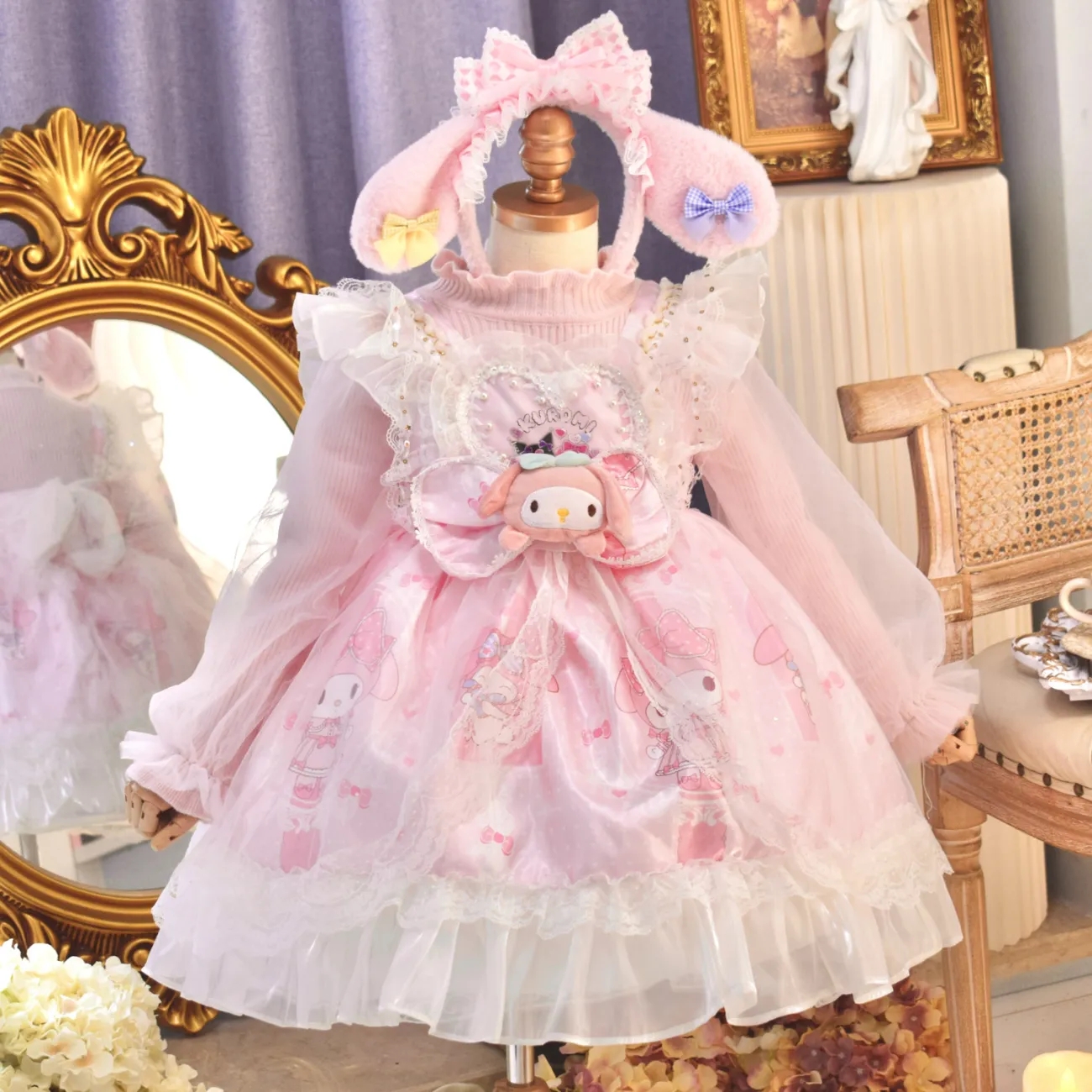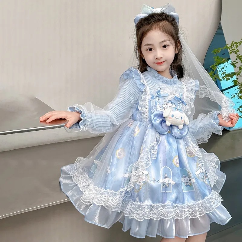 兒童秋冬Lolita生日可愛洋氣禮服 粉紅美樂蒂針織公主裙 紫色Kuromi針織公主裙 藍色肉桂狗針織公主裙 NT$ 1399
