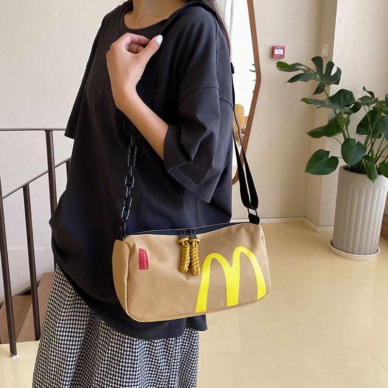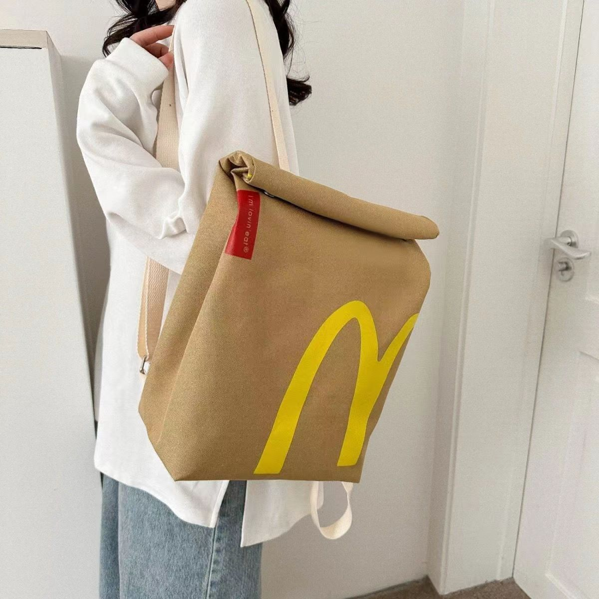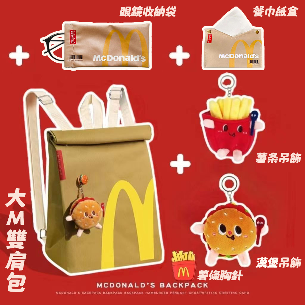 “惡搞麥麥”單雙肩包 百搭斜挎包 上課通勤都超時尚~【背包+薯條吊飾+漢堡吊飾+薯條胸針+眼鏡收納袋+收納紙巾套】再送兩件 NT$ 1399