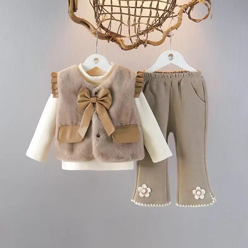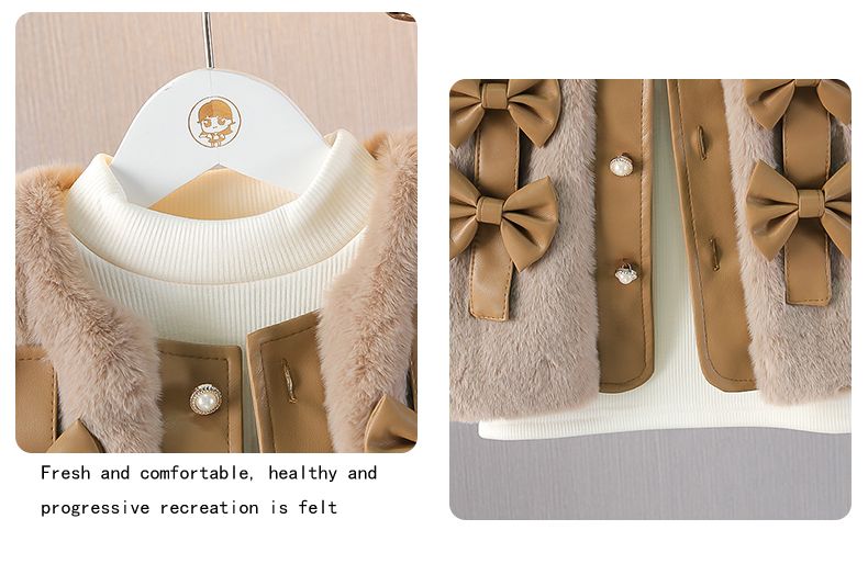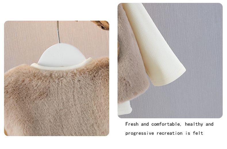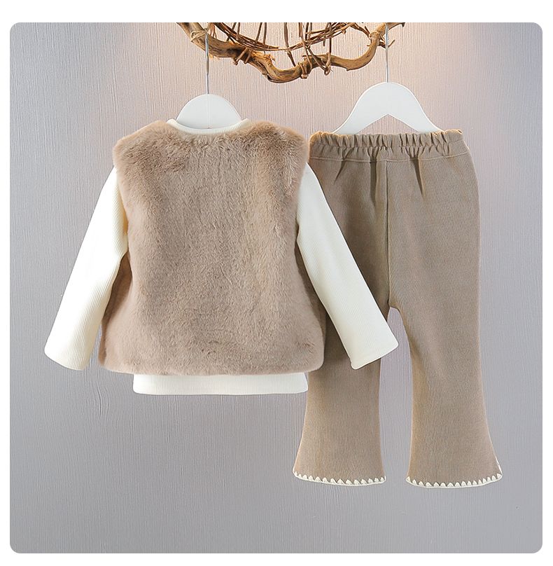 女童秋冬兒童時髦洋氣加絨小香風皮草馬甲+上衣+短裙三件組