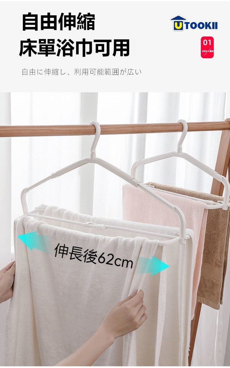 第 2 件 : 日式家用多功能可伸縮大衣架,防風加長大號,晾曬衣服、毛巾、浴巾、床單